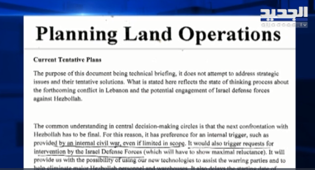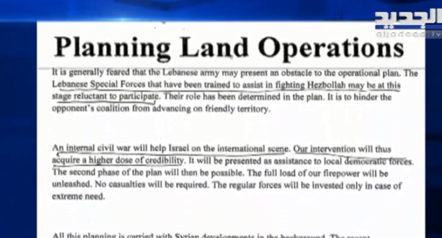 Το έγγραφο αναφέρει ότι ο απώτερος σκοπός είναι η αποσταθεροποίηση της χώρας, με την πρόκληση ενός εμφυλίου πολέμου στον Λίβανο «που θα βοηθήσει το Ισραήλ στην διεθνή σκηνή». Οι ΗΠΑ και το Ισραήλ σχεδιάζουν να επιτύχουν τον στόχο τους με την υποστήριξη τους στις «δημοκρατικές δυνάμεις», που μοιάζει αντιγραφή της στρατηγικής που εφάρμοσαν στην Συρία, στην Λιβύη, στην Βενεζουέλα και αλλού.