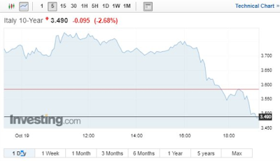 Στο οικονομικό «μέτωπο», οι αποδόσεις των ιταλικών ομολόγων «εκτοξεύθηκαν» μετά την επιστολή της Κομισιόν, ωστόσο μετά τις δηλώσεις Moscovici καταγράφεται σημαντική αποκλιμάκωση των πιέσεων.
