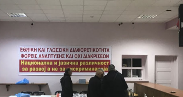 Το συνέδριο – γράφει το σλαβικό δημοσίευμα των Σκοπίων – σηματοδοτήθηκε με ένα μεγάλο πανό στα ελληνικά και στα σλαβικά, που τοποθετήθηκε στο κέντρο του χωριού Ξυνό Νερό, το οποίο οι Σλάβοι το αποκαλούν με σλαβική ονομασία.